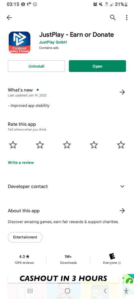 I’ve been collecting coins on this app works legit accumulated about $10 in two months. I don’t like that yesterday I hit a money clicker of about 5,000 the payout was less than expected. I expected more. Being that I only got less than a quarter.. I said to myself there’s no need for me to donate actually donate anymore if the app is probably doing it privately on its own garnishing aside from me playing. Give this app a try. Earn money while playing games. 03:21 AM PST [03/4/2022]