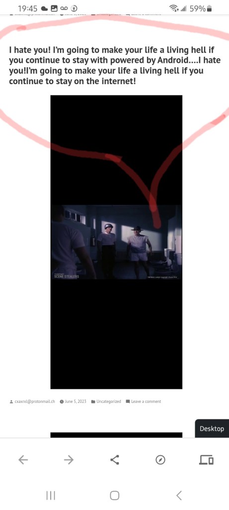 I hate you! I’m going to make your life a living hell if you continue to stay with powered by Android….I hate you!I’m going to make your life a living hell if you continue to stay on the internet! Posted bycxaxrxl@protonmail.chJune 5, 2023June 5, 2023Posted inUncategorized Share this: Click to share on X (Opens in new window) X Click to share on Facebook (Opens in new window) Facebook Like Loading...