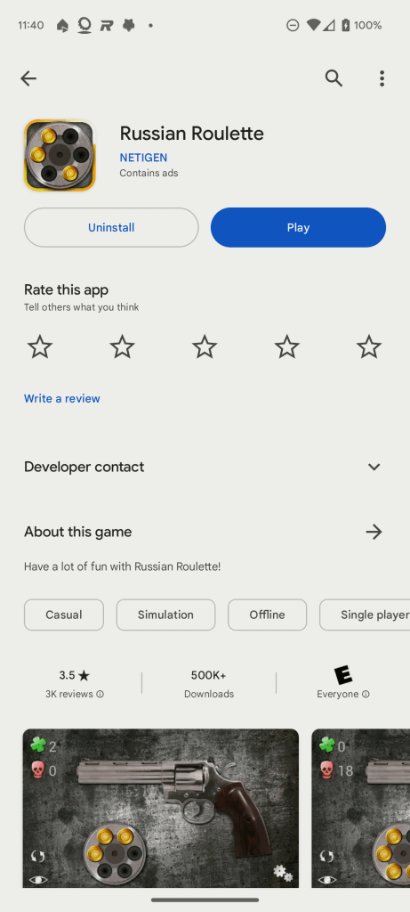 This app is stu+id and quite violent. I was hanging inside the houses. Door closed and Like the other game player went inside the house I was in and started to shoot me . I was low in bullets. Straight carne