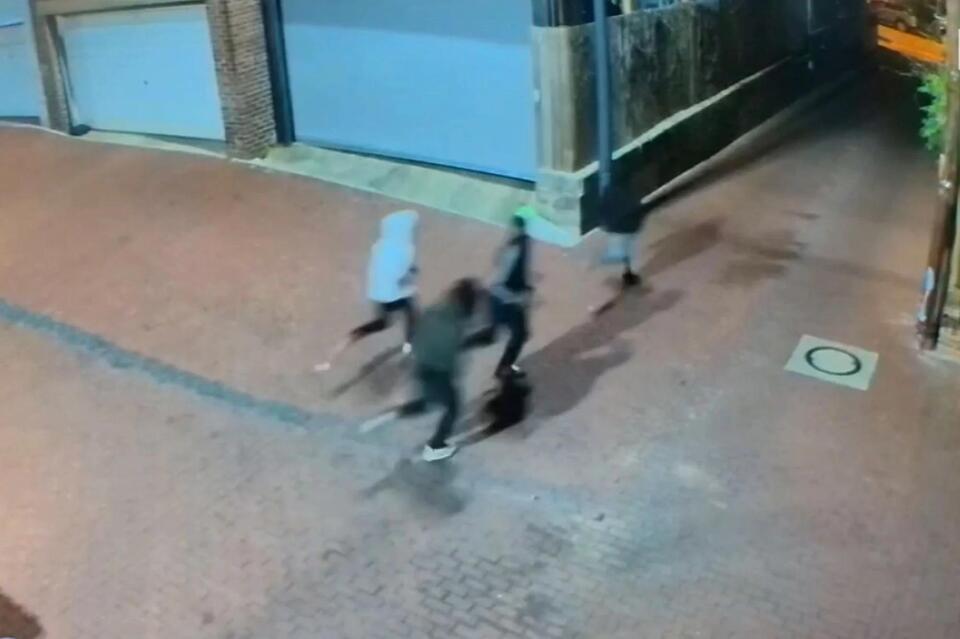In the clip, a single gunshot can be heard and then four young men are seen running down an alleyway.