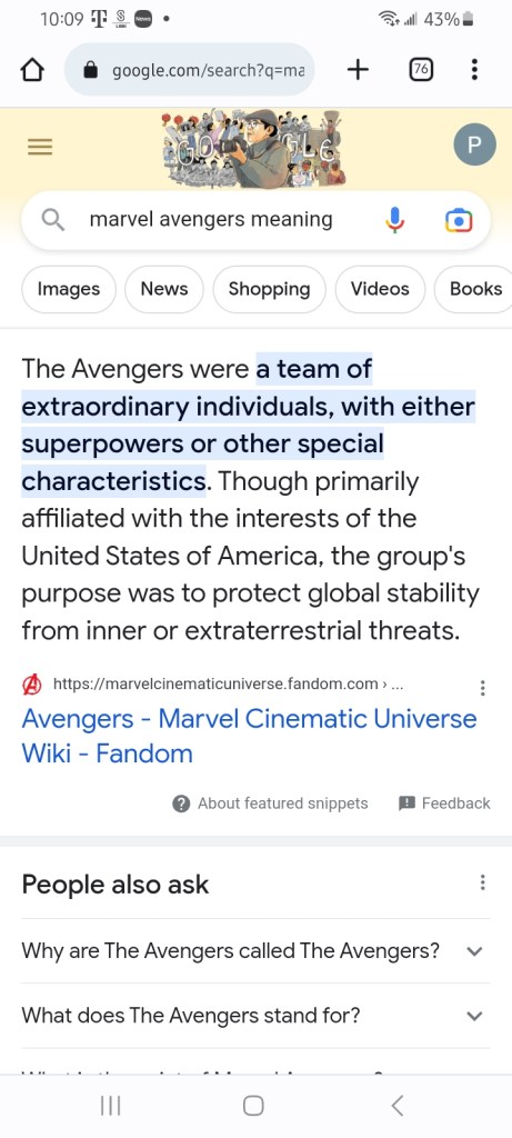 I’m just a fucken avenger. Besides that I’m unemployed and a loner with the humans