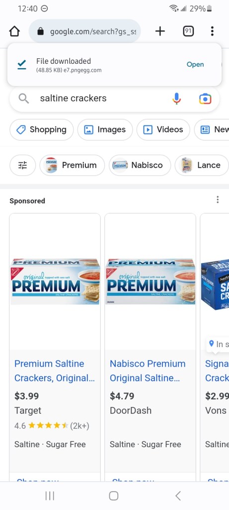 Well I have been eating saltine crackers lately this week..